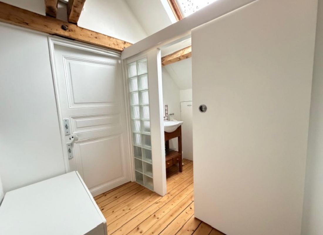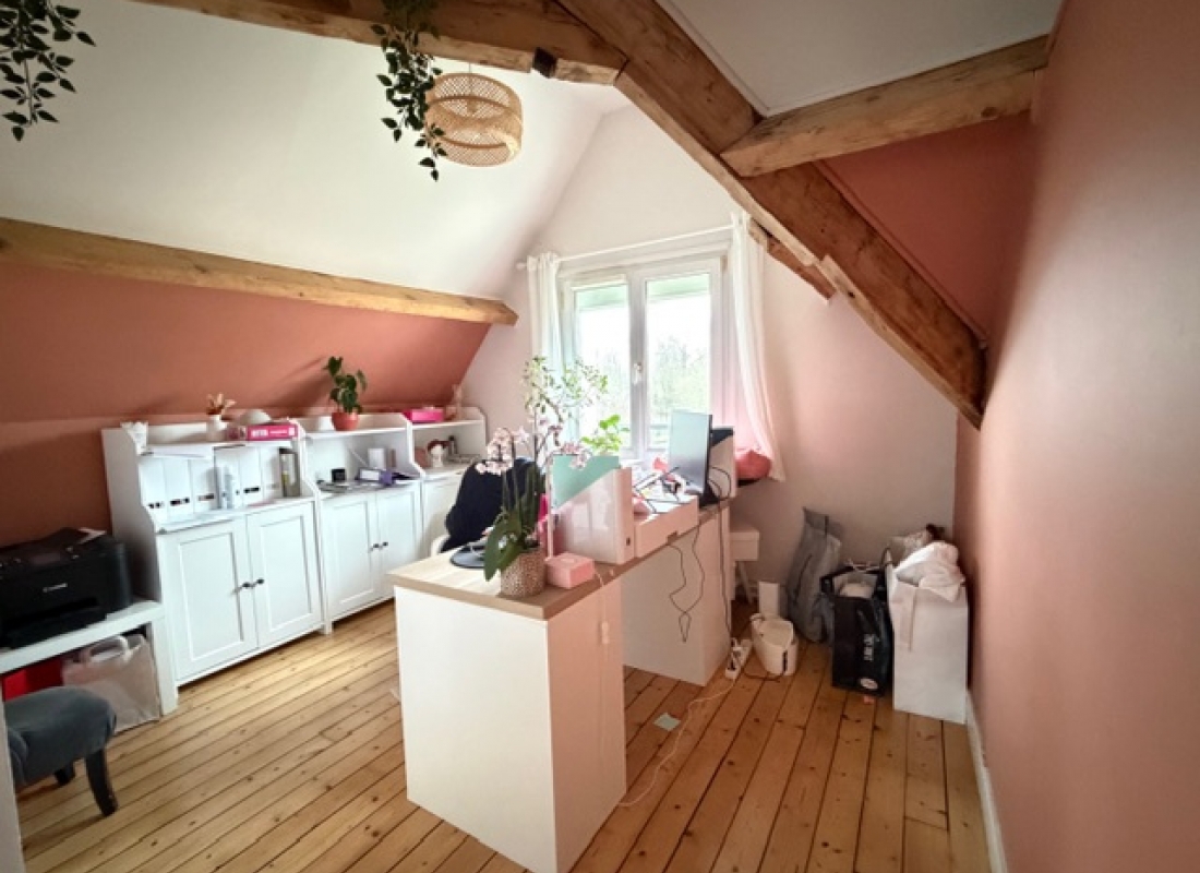 Descriptif: Maison de caractère comprenant une entrée, séjour double avec cheminée et poele à granule avec accès direct à la terrasse et au jardin, cuisine aménagée, chambre et wc.