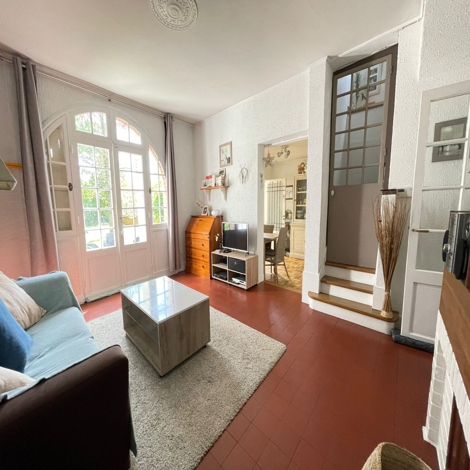 Au rez-de-chaussée : une entrée, salon avec accès à la terrasse et au jardin, salle à manger, cuisine,WC.