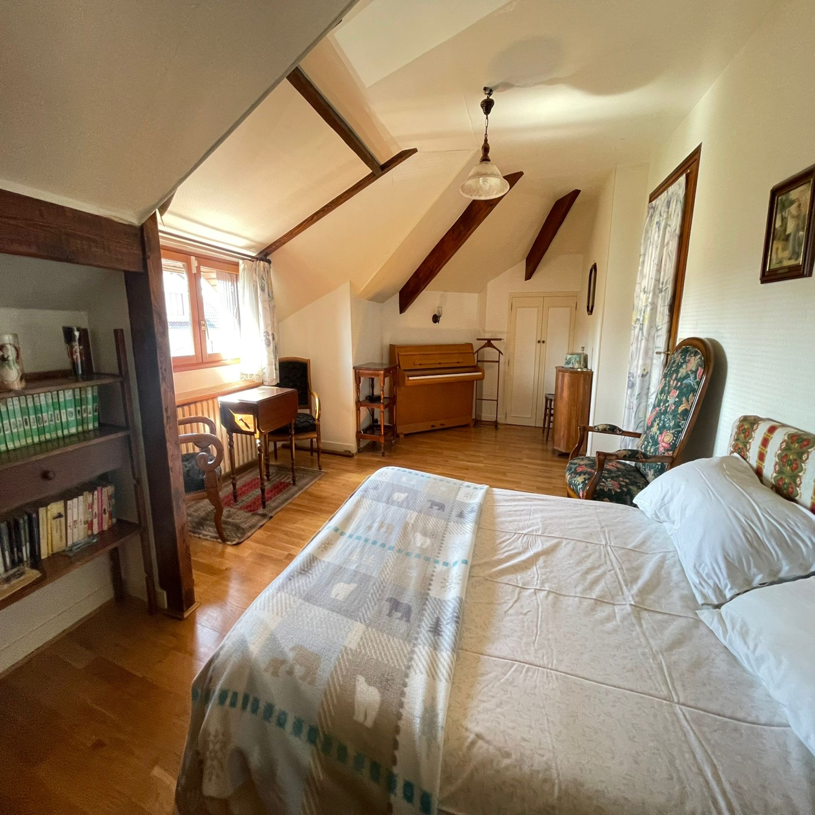 Au rez-de-chaussée, une entrée, un séjour double de 31 m², une cuisine, une chambre, une salle de bains et un WC.