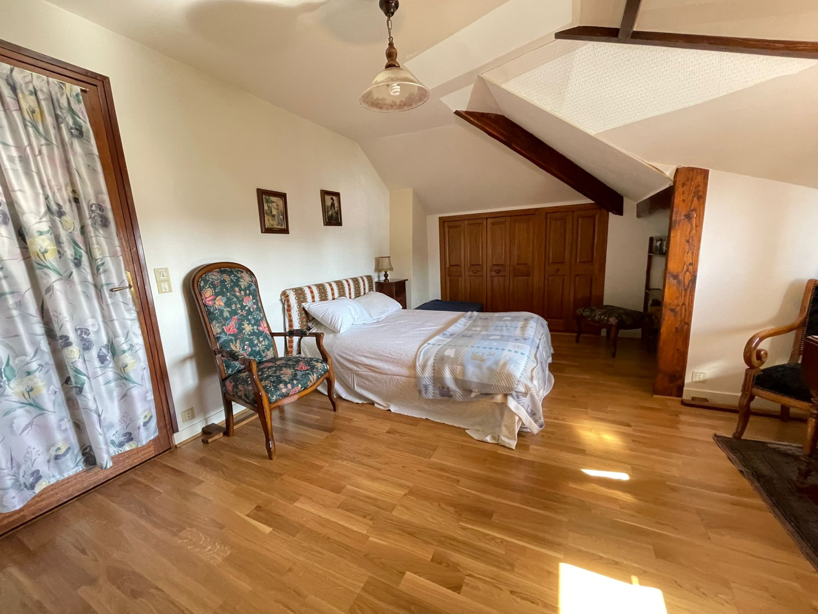 À l'étage, un pallier, 2 chambres et une salle d'eau avec WC.