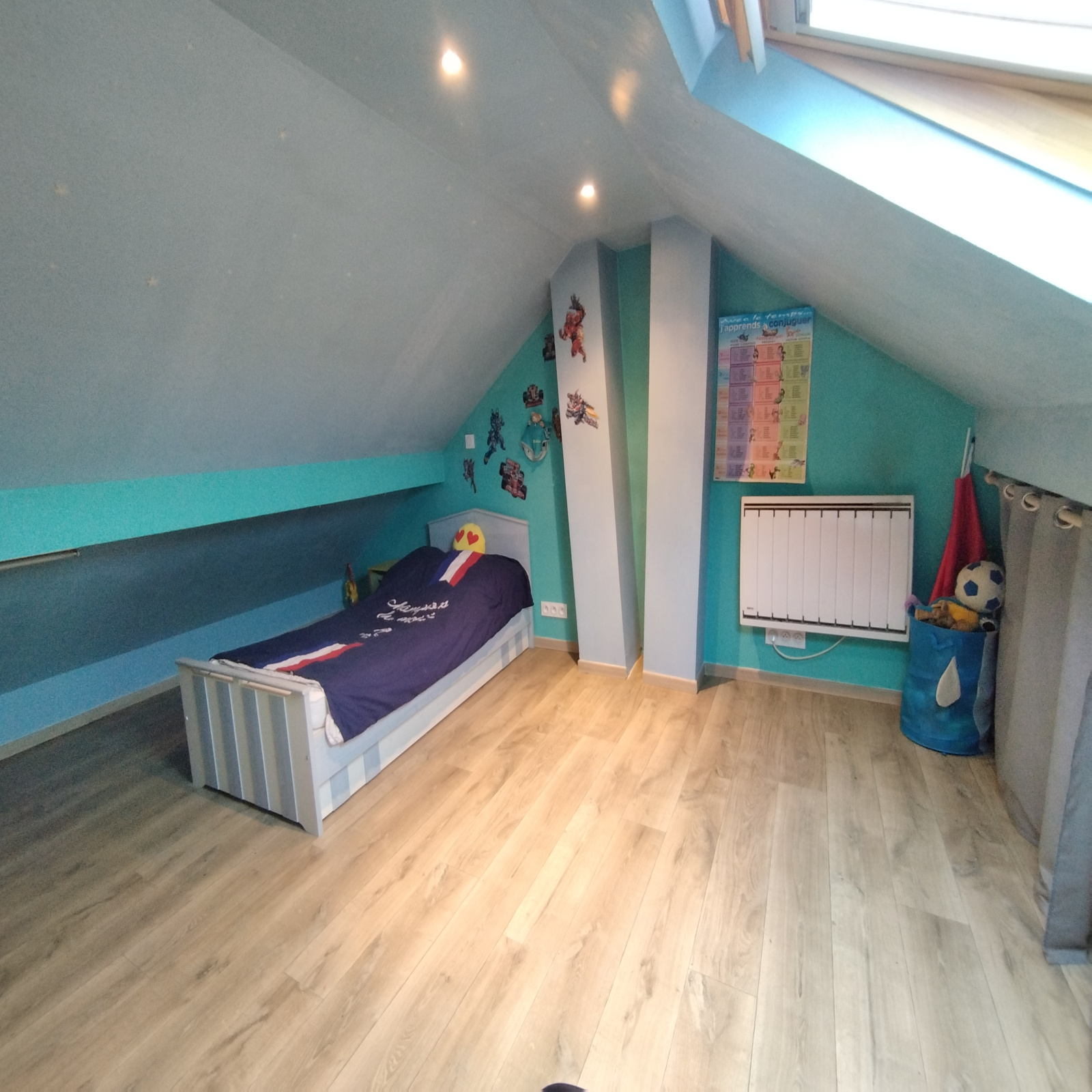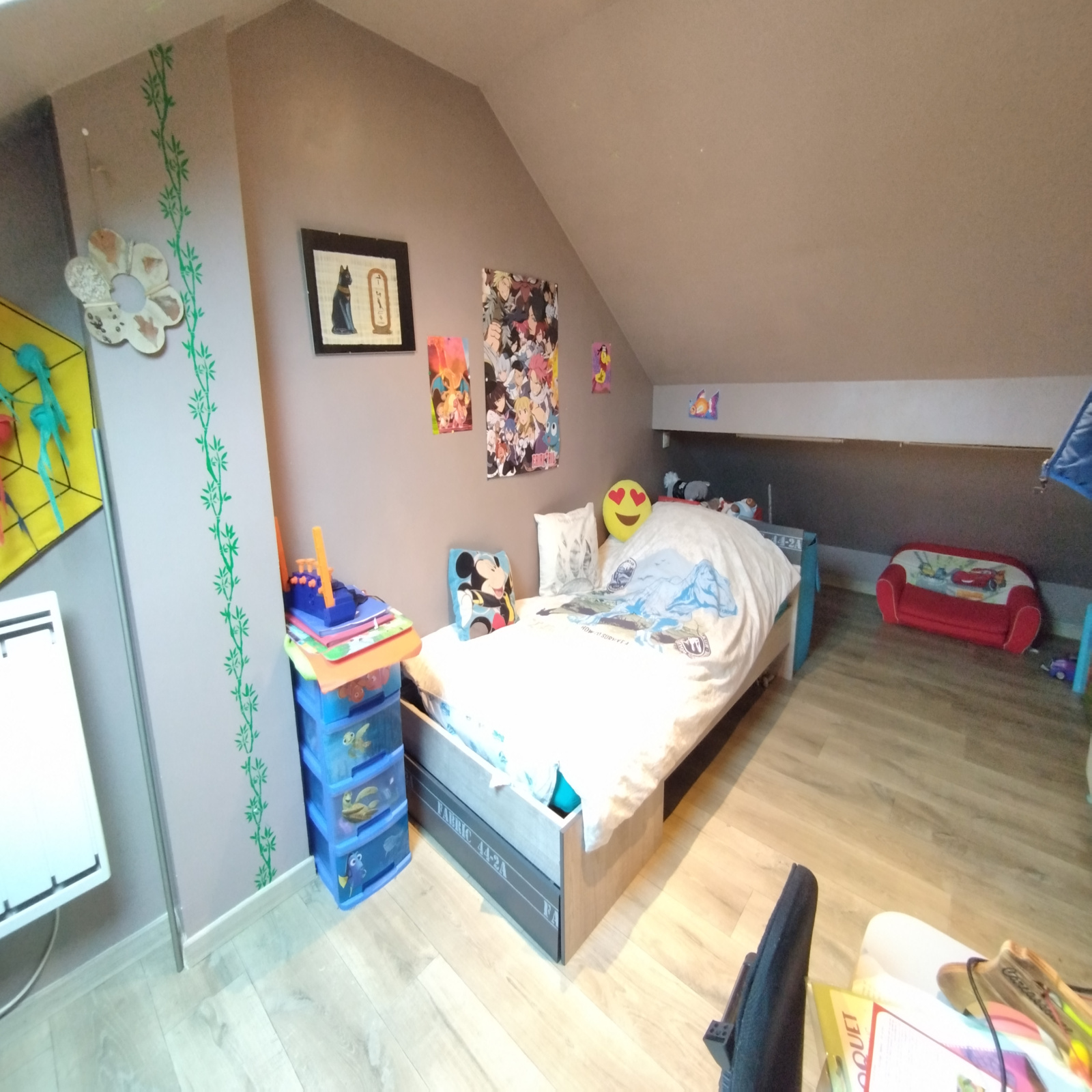 A l'étage dégagement, deux chambres.