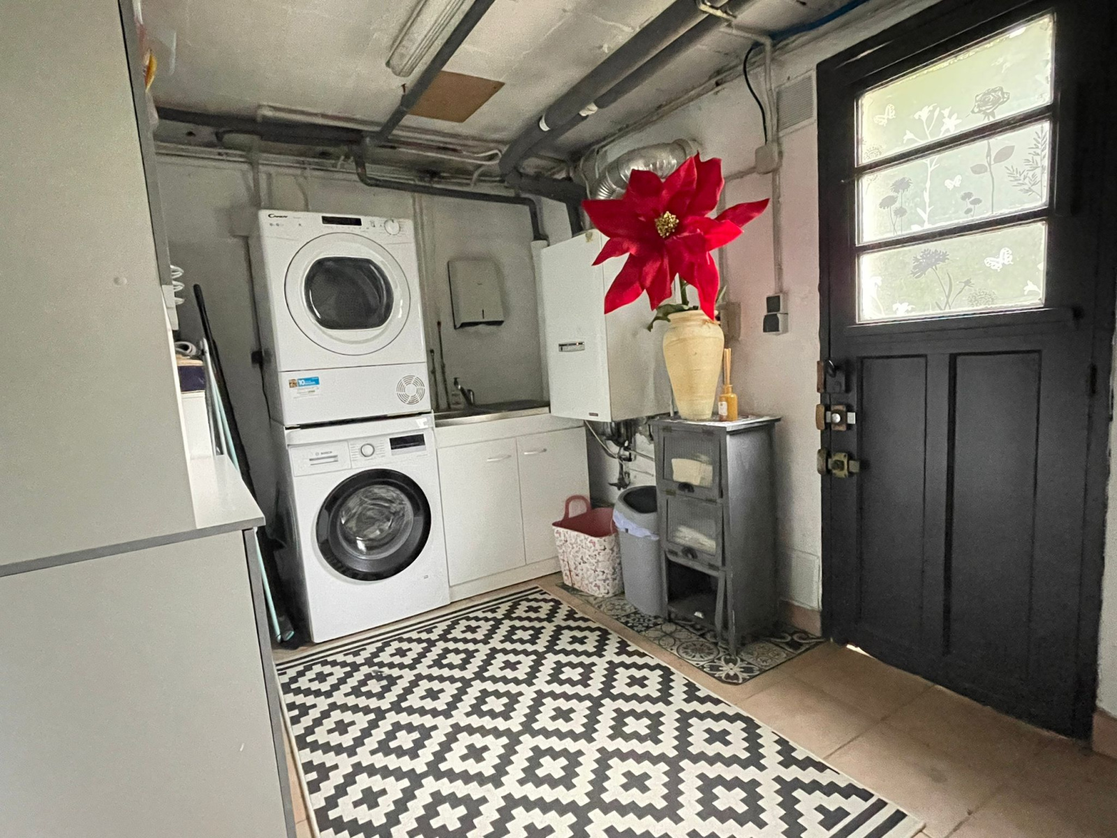 Rez de jardin total divisé en une pièce habitable d'une surface d'environ 12m2 , un garage et une buanderie.