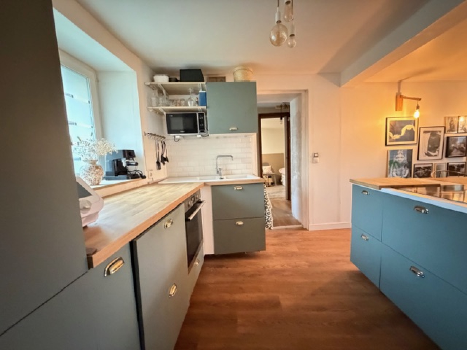 Appartement F4 avec jardin privatif comprenant une entrée , un séjour salon donnant accès à la terrasse et au jadin ,une cuisine aménagée et équipée , trois chambres , une salle de bains , un cellier et une cave en sous sol.